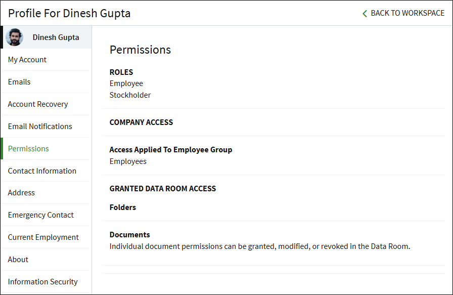 Click Permissions to view your assigned Roles and what level of access has been granted to you.