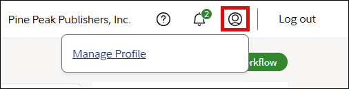 You can access your profile from the platform's toolbar. Click on the profile icon and click Manage Profile.