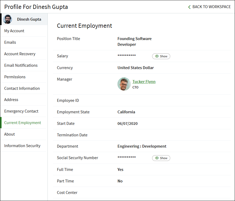 If you are an employee of the company, you can find information about your salary, start date, title, and more on the Current Employment page.