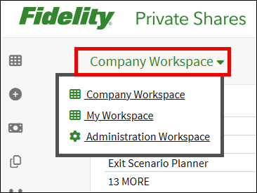 To return to the company workspace at any time, click the Fidelity logo in the upper left corner of the screen.