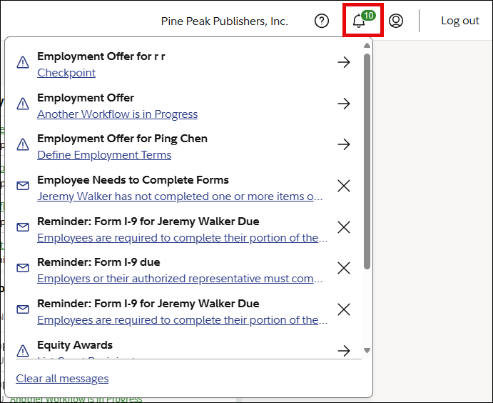 Clicking on the notification icon in the top right corner will open all of your messages and reminders about outstanding tasks.