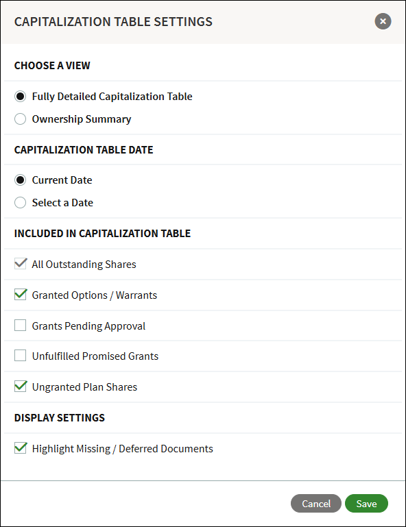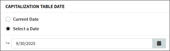 You can generate a Cap Table as of a specific date. By default, the table will reflect the current date, but you can select any date that suits your needs.