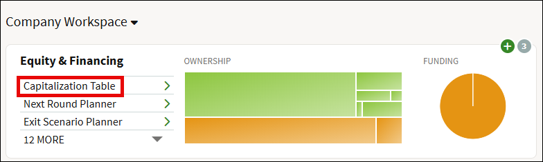To view the Cap Table, navigate to the the Equity and Financing module and click on Capitalization Table.